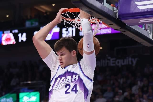 爵士这边已经4人得分上双,马尔卡宁15分,凯斯勒15分,乔治11分7助攻,森萨博10分。
