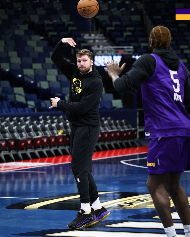 湖人队首发阵容:东契奇、里夫斯、斯马特、八村塁、艾顿
